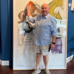 A 4’ X 6 1/2 ‘ painting of Nantucket found in an attic. The 22k gold frame with a white panel has gold stars all around the edge. Frame was built by New Look Frames in Florida
